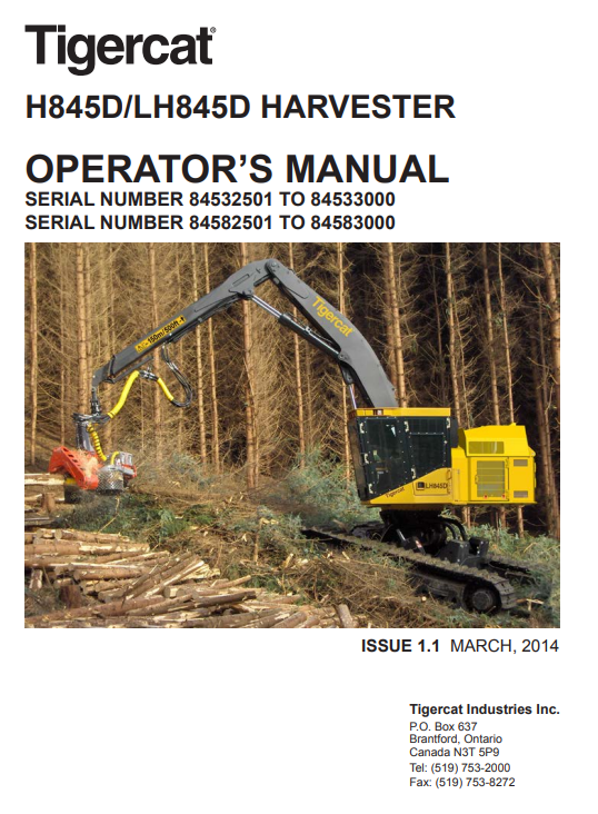 Tigercat H845D, LH845D Harvester Operator’s Manual