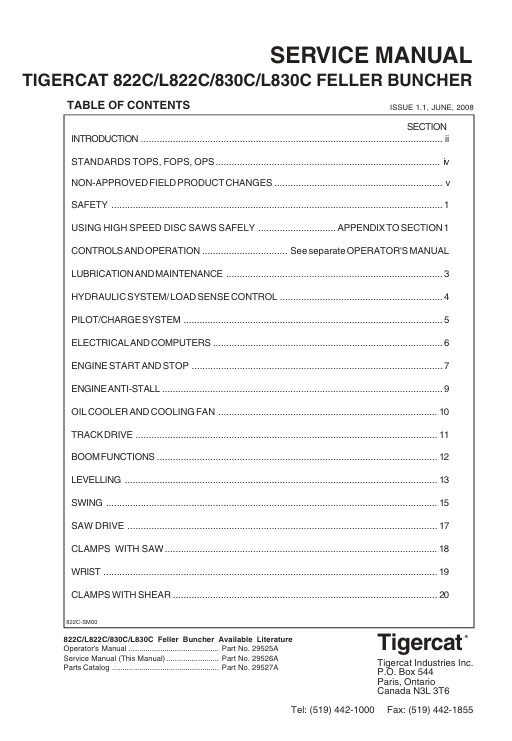 | Package include | Tigercat L822C Feller Buncher Service Repair Manual |