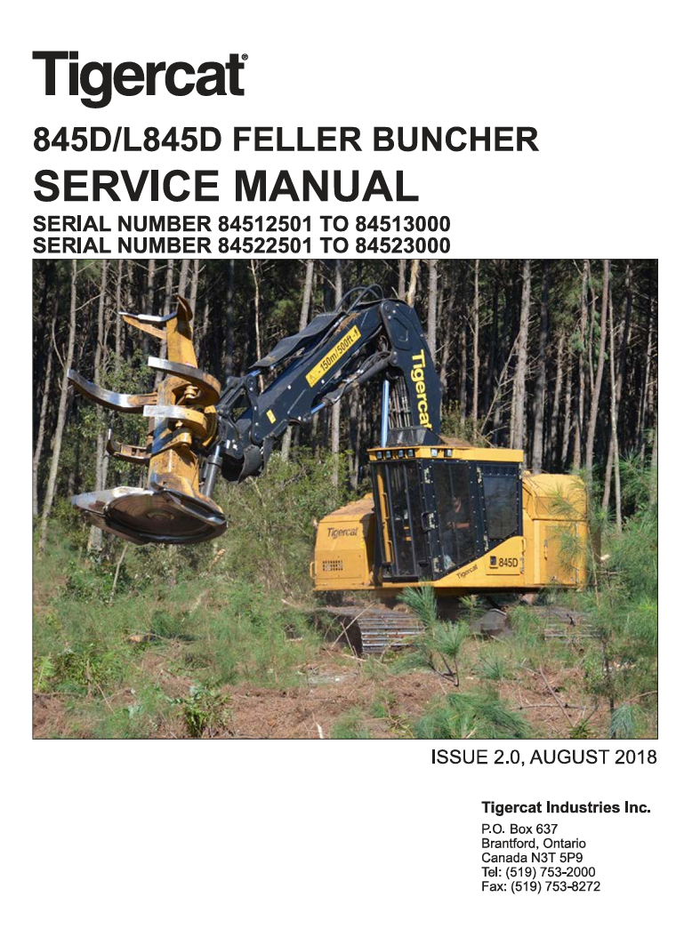 | Package include | Tigercat L845D Feller Buncher Service Repair Manual |