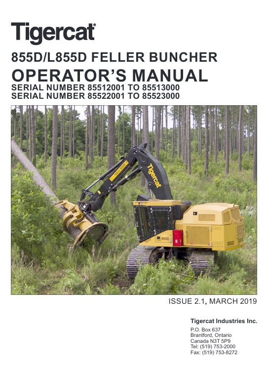 | Package include | Tigercat L855D Feller Buncher Operator’s Manual |