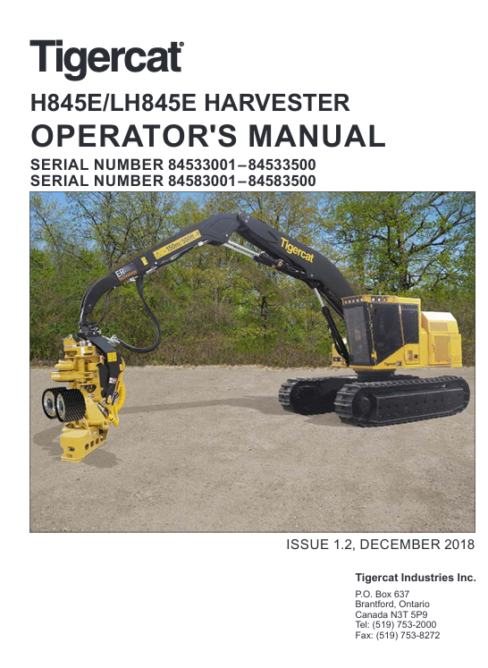 | Package include | Tigercat LH845E Harvester Operator’s Manual |