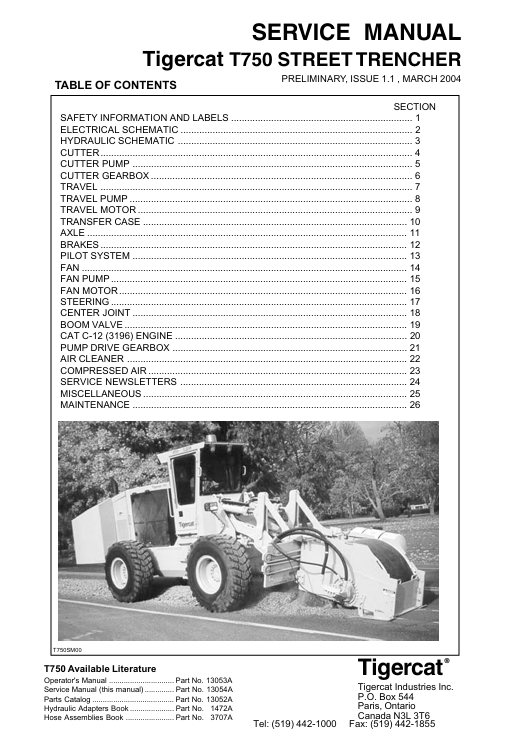 | Package include | Tigercat T750 Street Trencher Service Repair Manual |