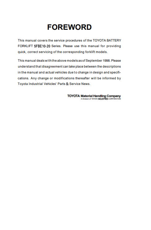 Toyota 5FBE10-20 Serie Service Repair Manual