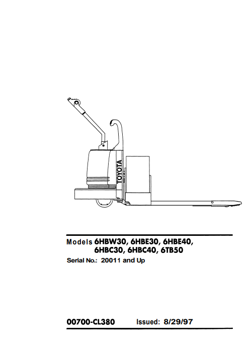 Toyota 6HBW30,6HBE30,6HBE40, 6HBC30,6HBC40,6TBSO Service Repair Manual