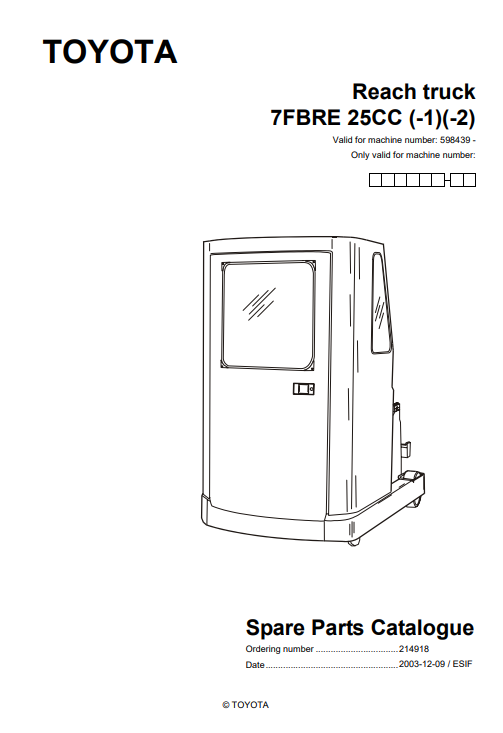 Toyota Reach Truck 7FBRE25CC (-1)(-2) Spare Parts Catalogue