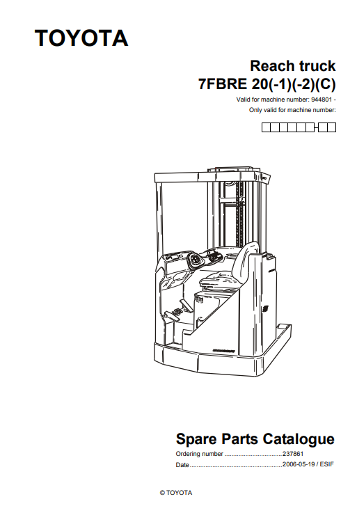 Toyota Reach truck 7FBRE20(-1)(-2)(C) Spare Parts Catalogue