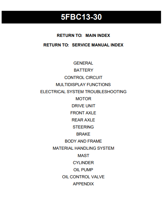 Toyota Forklift 5FBC13, 5FBC30 Service Repair Manual
