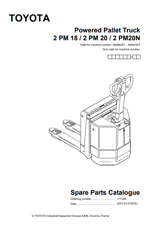 Toyota Powered Pallet Truck 2 PM 18, 2 PM 20, 2 PM20N Spare Parts Catalogue