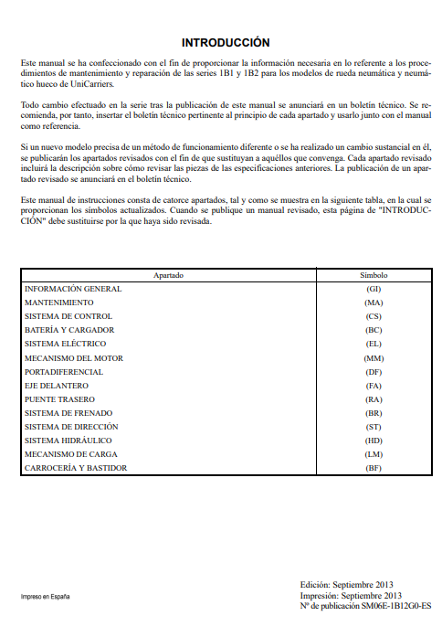 Manual de reparación de servicio de montacargas UniCarriers 1B1 y 1B2