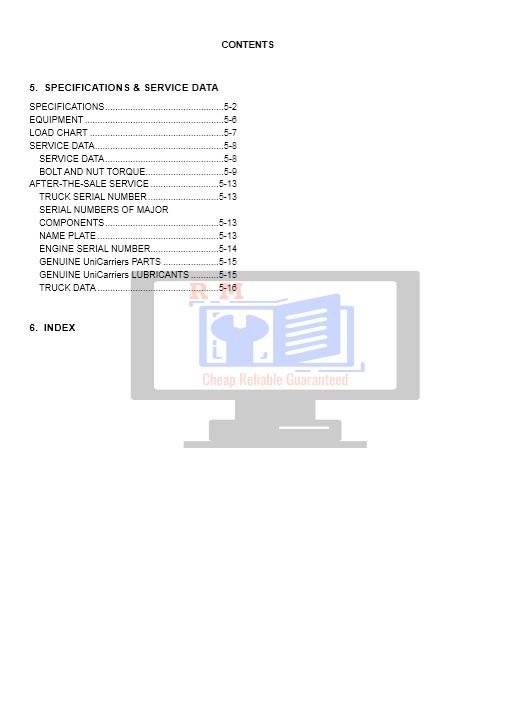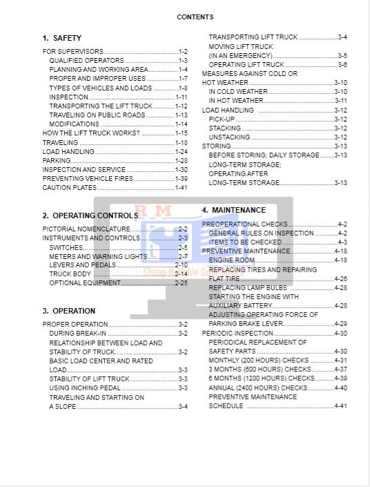 Unicarriers Forklift Truck FG and FD Series Operation and Maintenance Manual