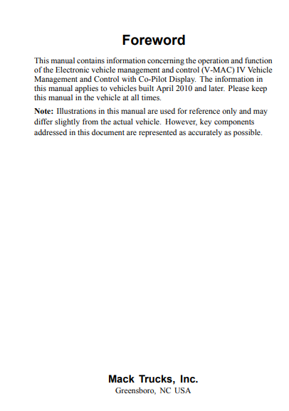 With This Operator’s Manual provide full instruction on how to begin using the V-MACK and its controls of your v-mack Models of :