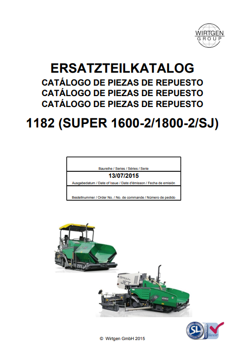 Wirtgen Vogele 1182 (SUPER 1600-2/1800-2/SJ) Parts Manual