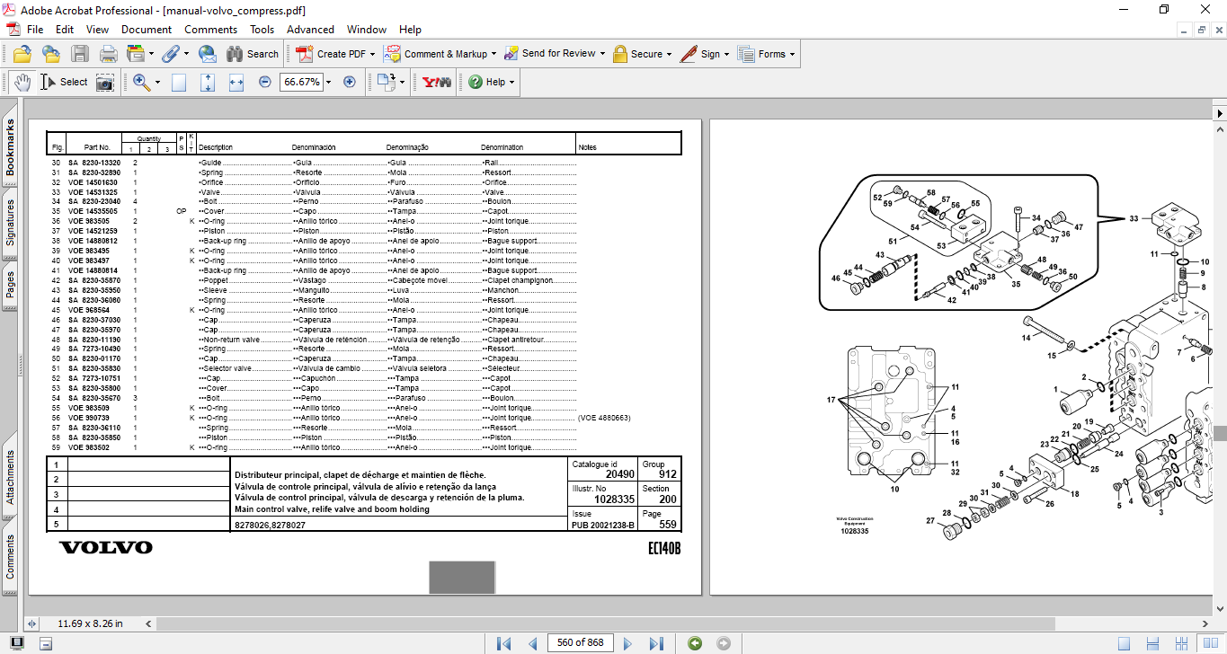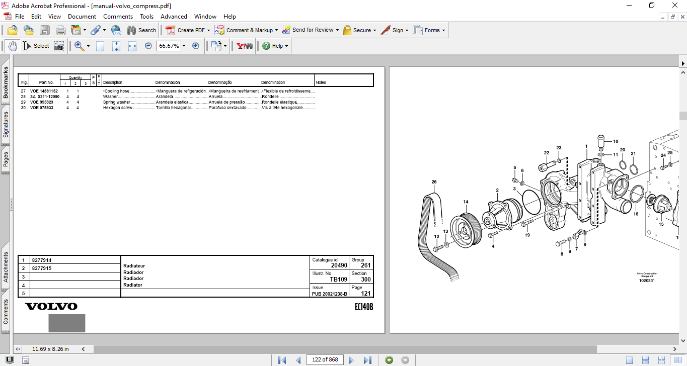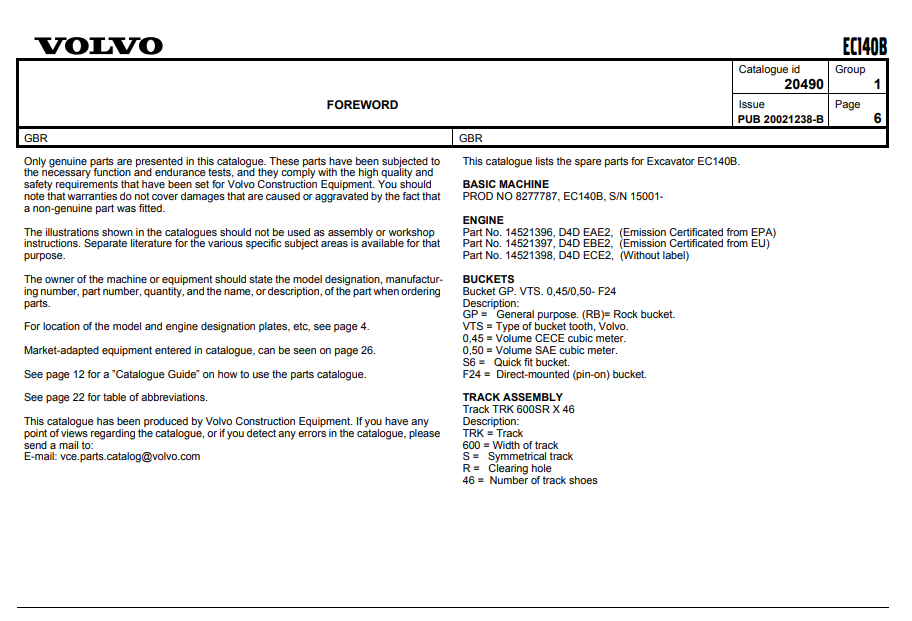 Parts catalog for Volvo EC140B Excavator, showcasing detailed diagrams and component listingsVolvo EC140B Excavator Parts Catalog