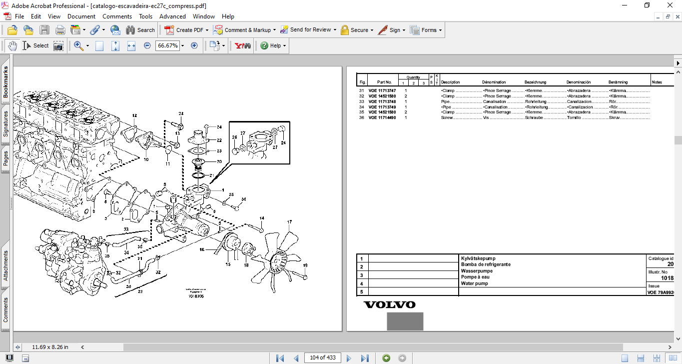Parts catalog for Volvo EC27C excavator, detailing components and specifications for maintenance and repairVolvo EC27C Excavator Parts Catalog