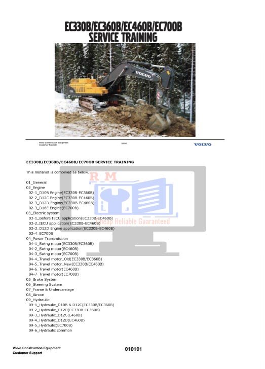 Volvo EC330B, EC460B, 700B Workshop Service Training Manual