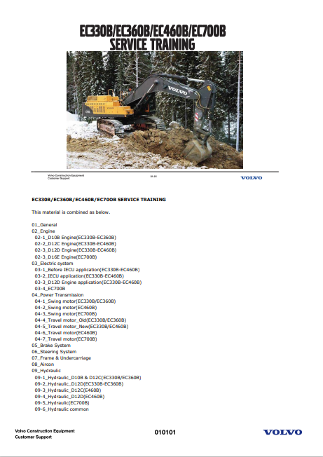 Enhance your maintenance and repair skills with the Volvo EC330B, EC360B, EC460B, and EC700B Excavators Service Training Manual. This comprehensive guide provides detailed insights into the operation, troubleshooting, and servicing of these powerful machines, ensuring you can maximize their performance and longevity. With clear illustrations and step-by-step instructions, this manual is an essential resource for technicians and operators alike, empowering you to tackle any challenge with confidence. Invest in your expertise and keep your excavators running smoothly with this indispensable training manual