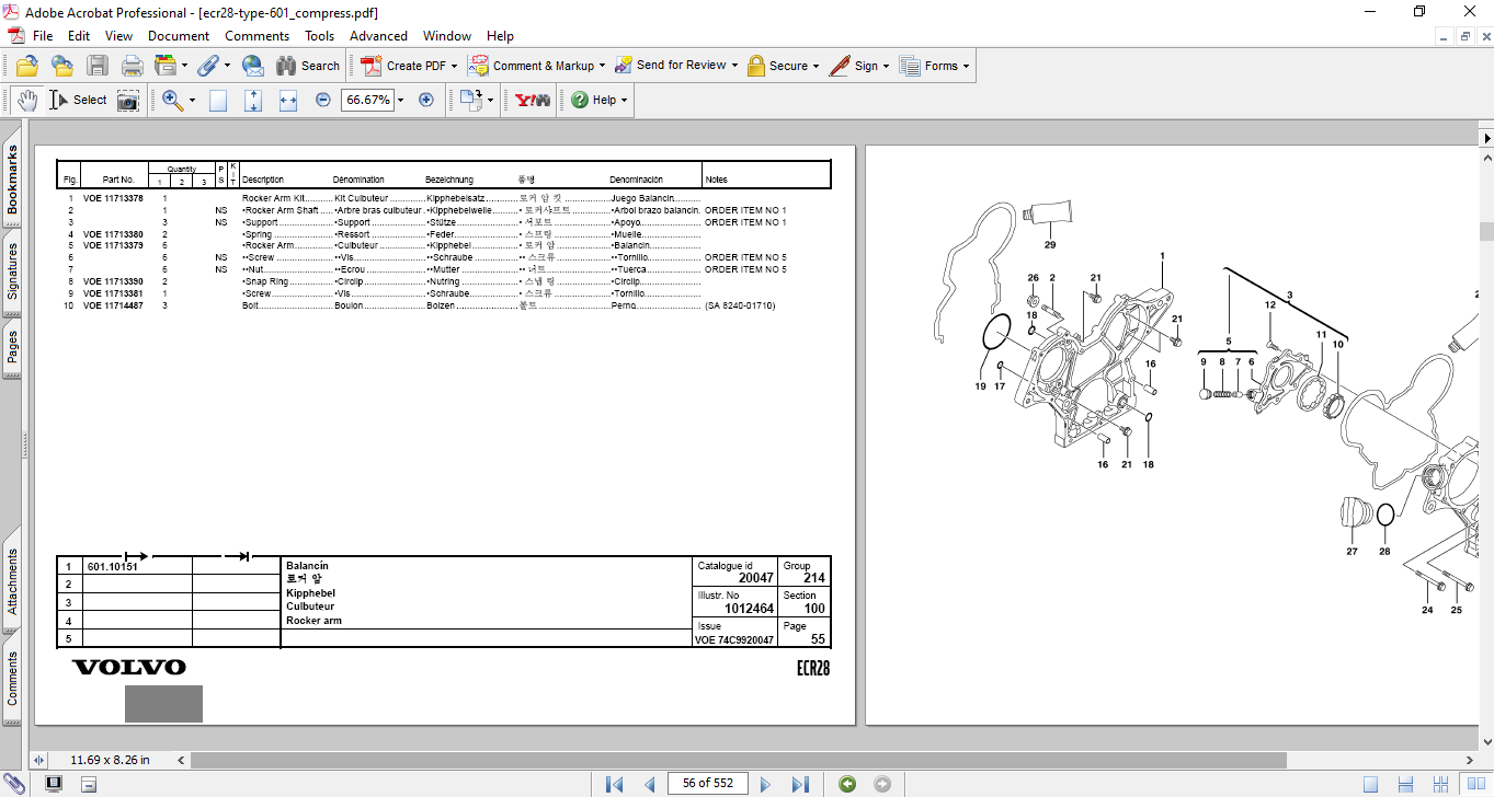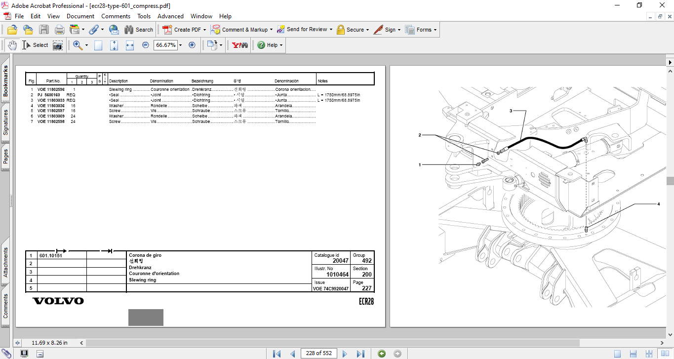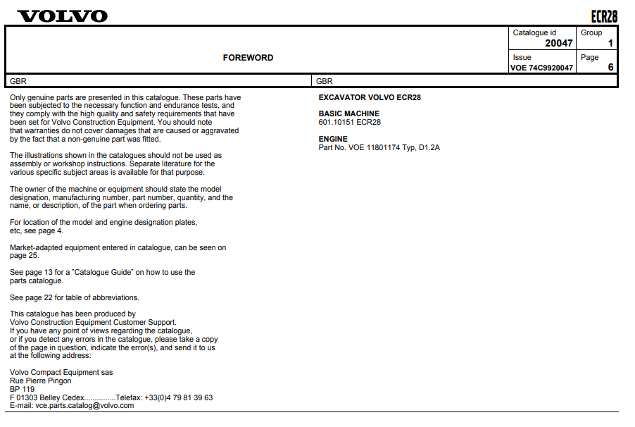 Parts catalog for the Volvo ECR28 Mini Excavator, detailing components and specifications for maintenance and repairVolvo ECR28 Mini Excavator Parts Catalog