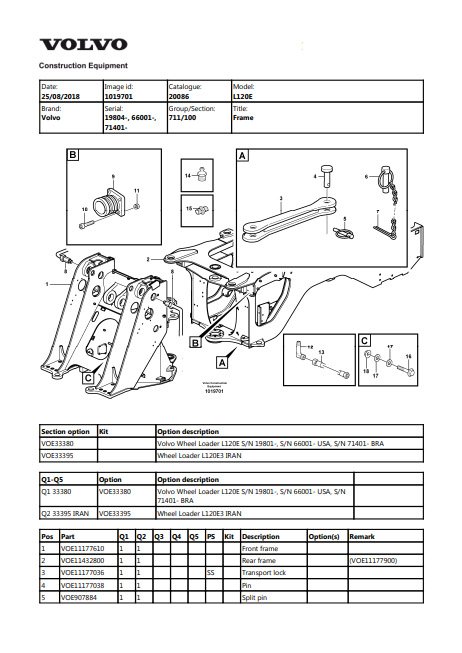 Discover the comprehensive Volvo L120E Wheel Loader Parts Catalog, your essential resource for maintaining and enhancing the performance of your equipment. This meticulously organized catalog features detailed listings of genuine Volvo parts, ensuring you find the exact components needed for repairs and upgrades. With clear illustrations and part numbers, you can easily navigate through the extensive selection, saving time and ensuring accuracy in your orders. Invest in the longevity and efficiency of your Volvo L120E with this indispensable tool for any operator or technician