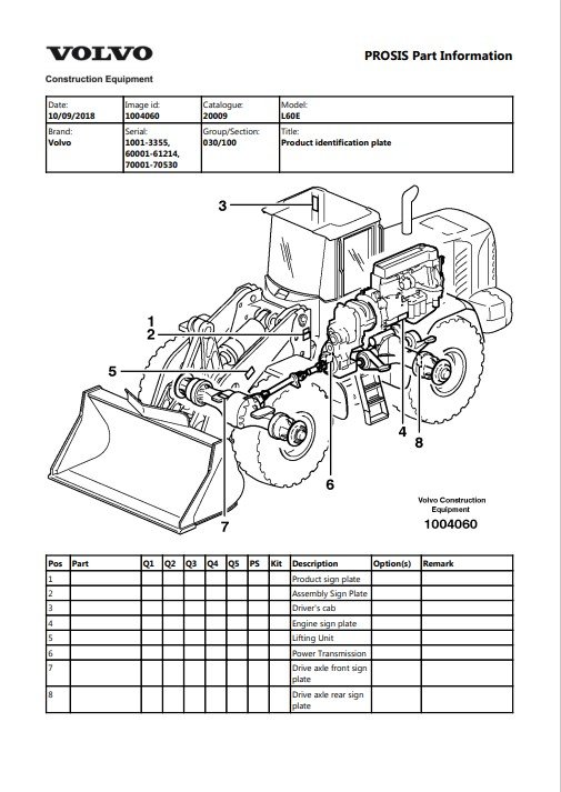 Volvo L60E Wheel Loader Parts Manual