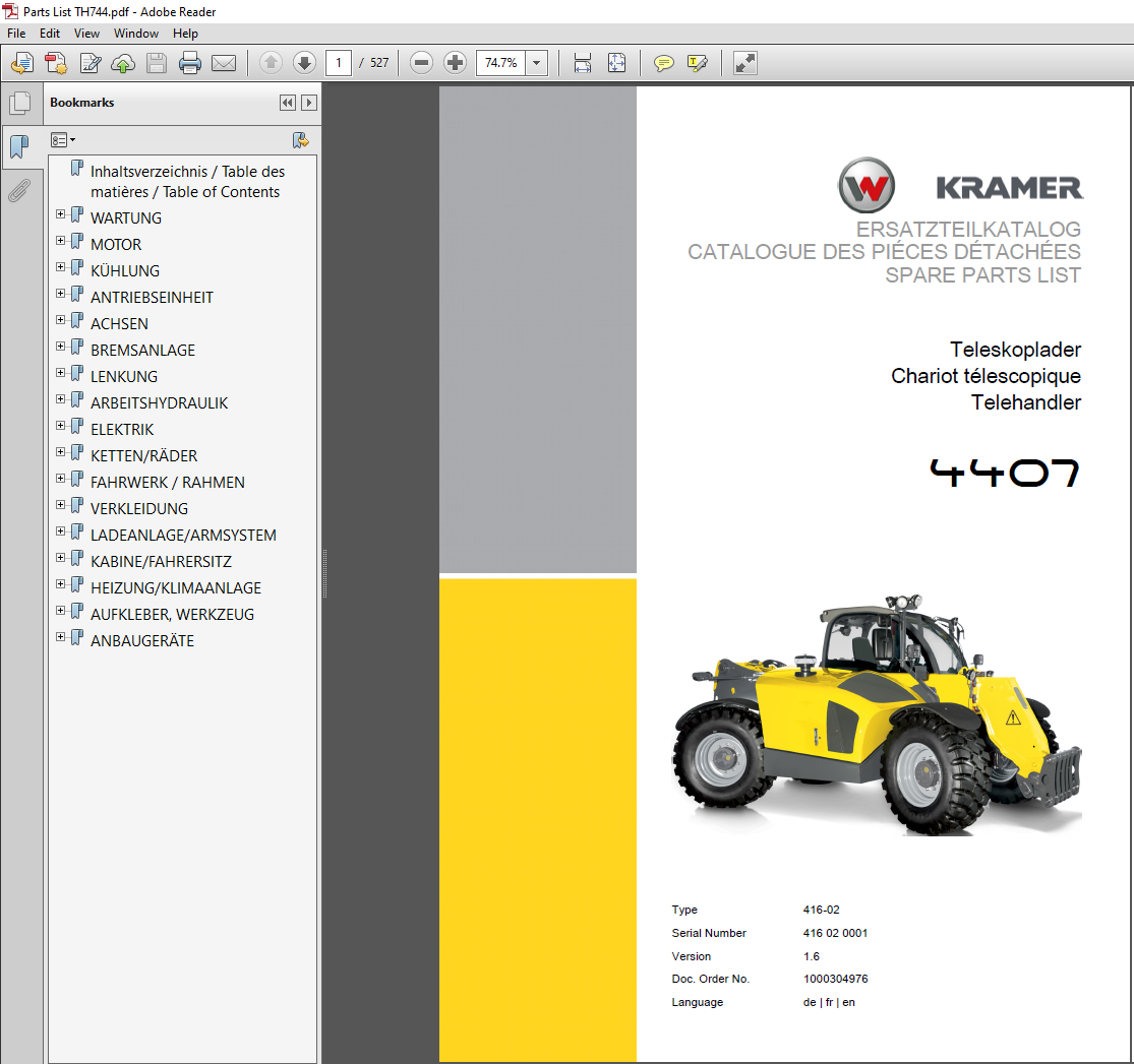 - ✔ Complete parts catalog for Wacker Neuson 4407 Telehandler