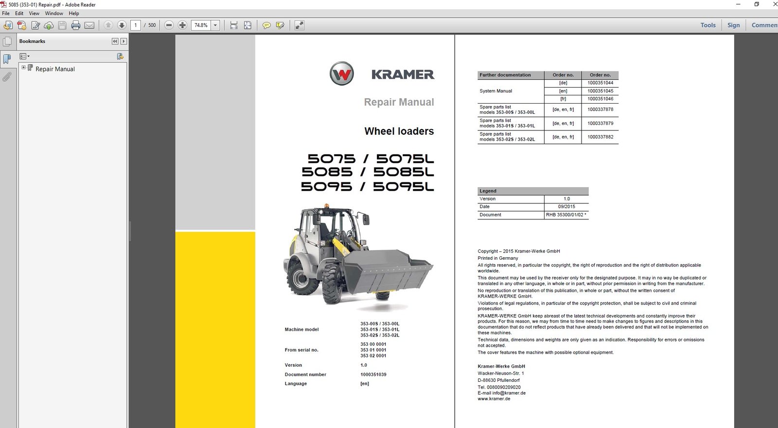 Wacker Neuson 5085 and 5085L Kramer Wheel Loader Service Repair Manual