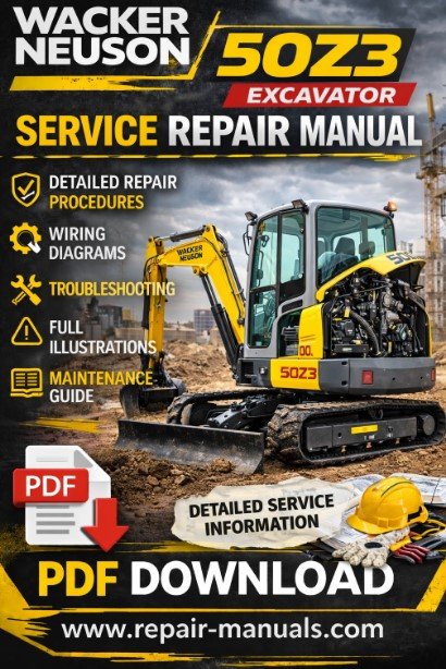 The Wacker Neuson 50Z3 Excavator Service Repair Manual is a comprehensive workshop guide designed for technicians, mechanics, and equipment owners who need detailed instructions for servicing and repairing the Wacker Neuson 50Z3 compact excavator.