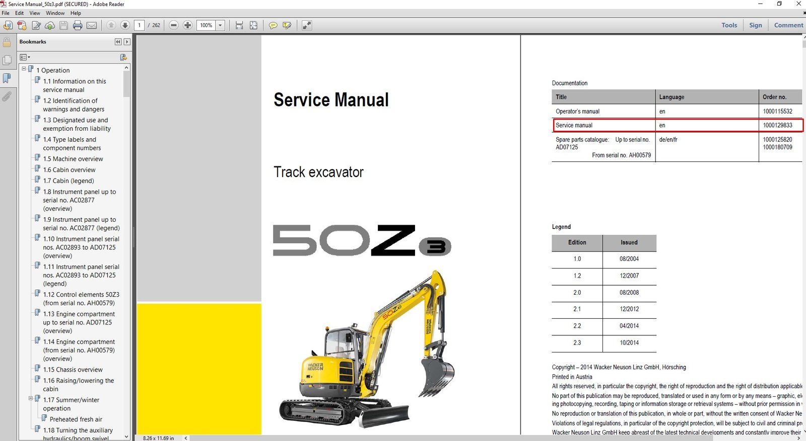 Wacker Neuson 50Z3 Excavator Service Repair Manual – PDF Download