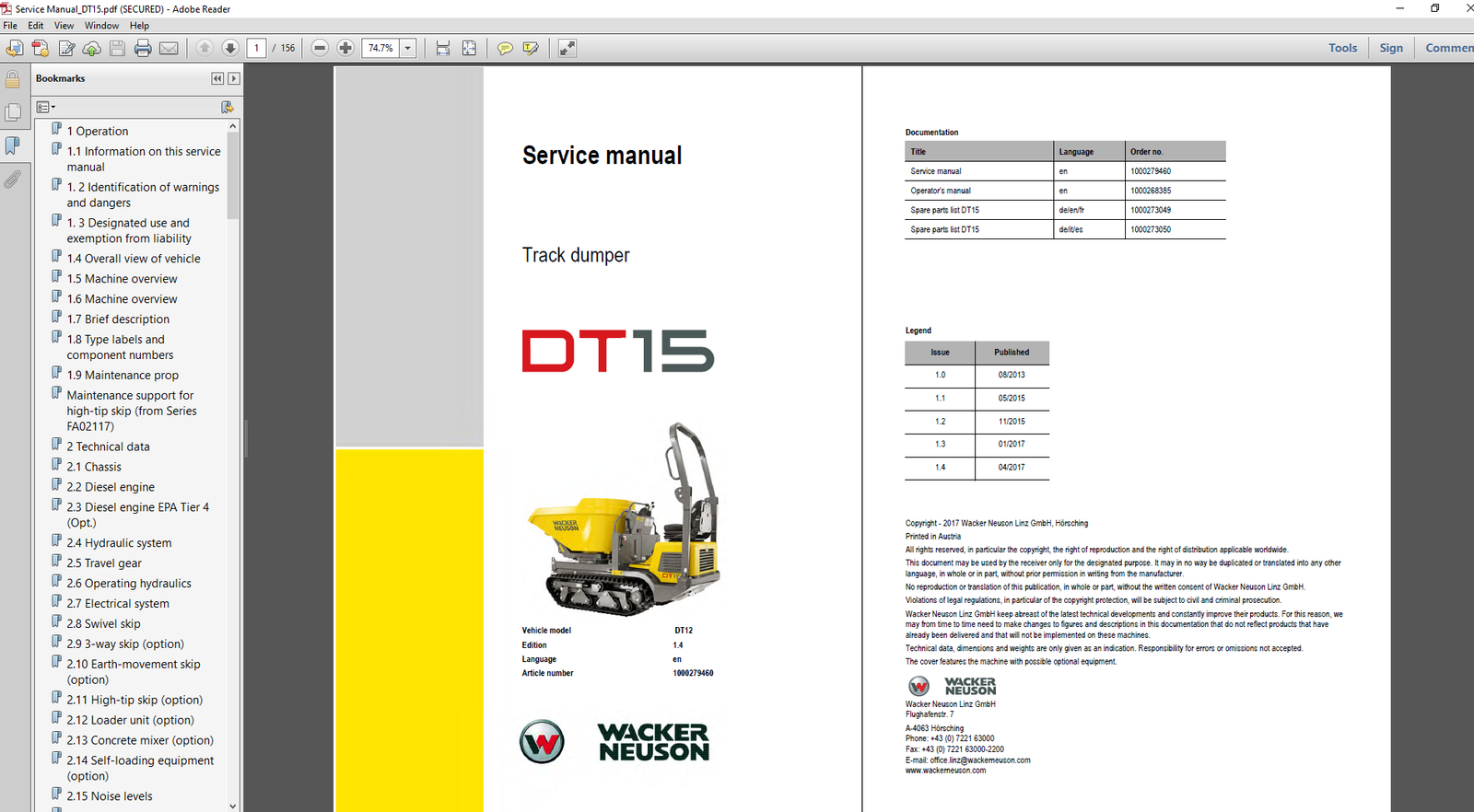 Download the complete Wacker Neuson DT15 Dumper Service Repair Manual in instant PDF format. This professional workshop manual provides detailed instructions, technical data, and step-by-step procedures to help you maintain, troubleshoot, and repair your DT15 dumper efficiently.
