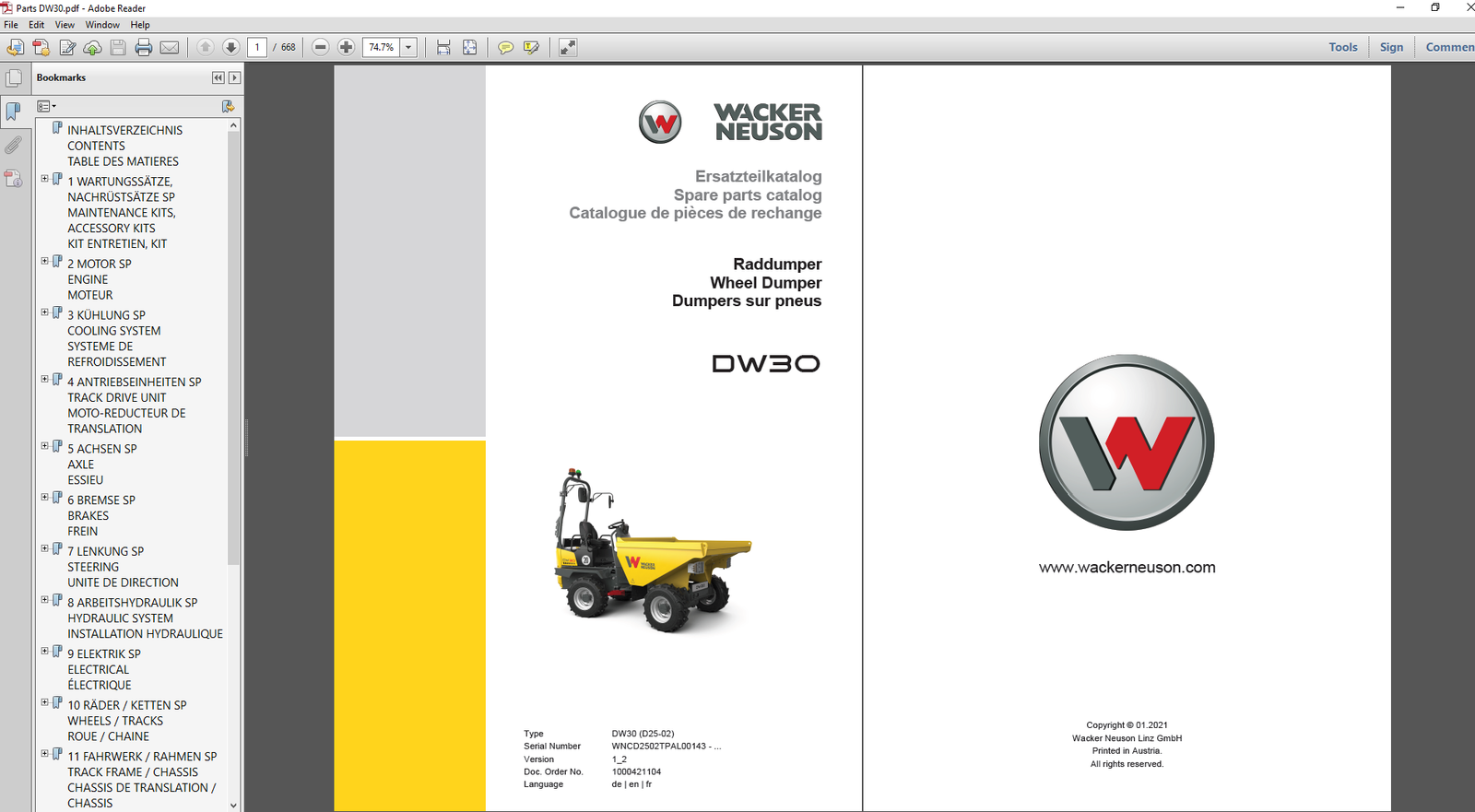 Wacker Neuson DW30 Dumper Parts Manual – PDF Download