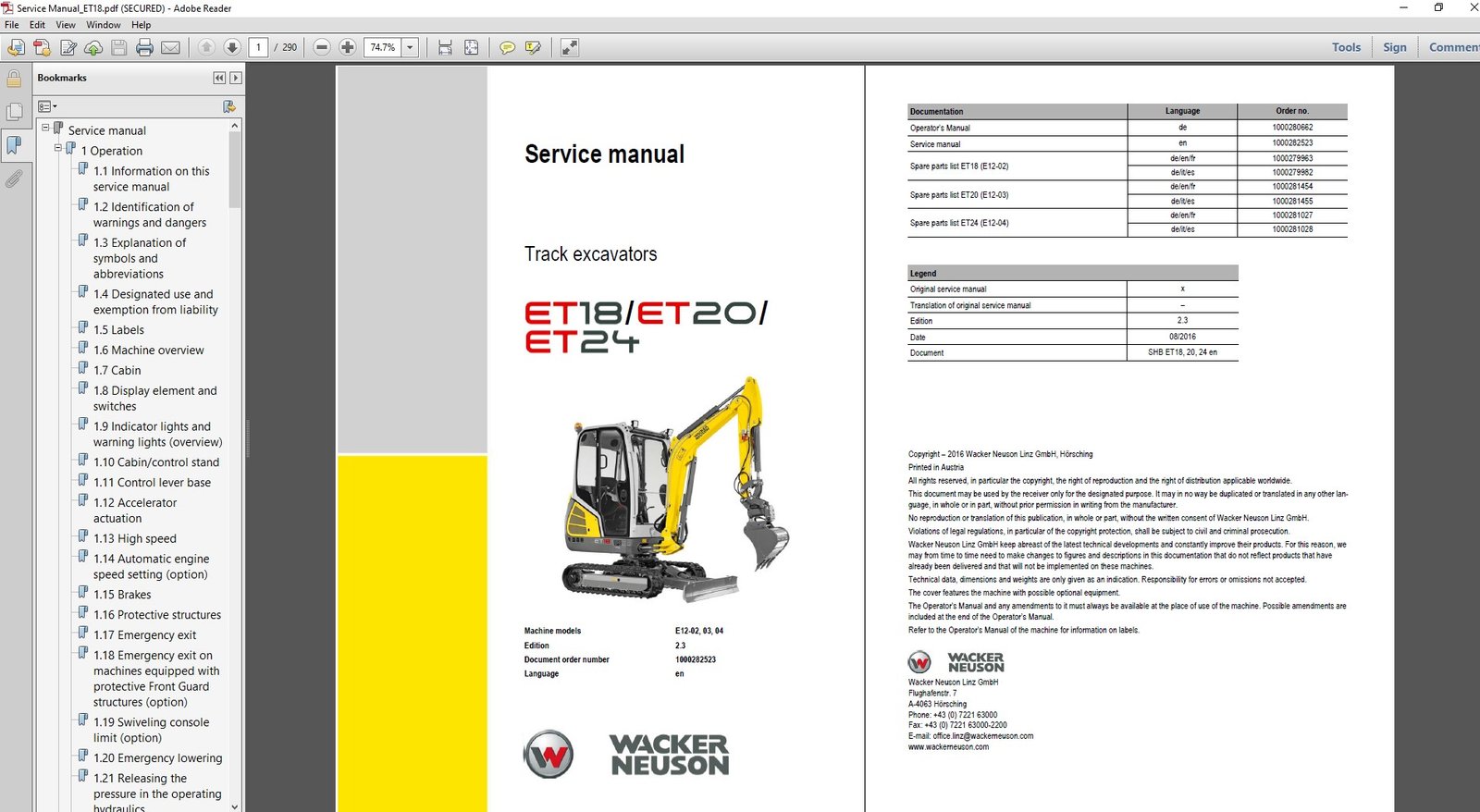 Maintain, service, and repair your equipment with confidence using this Wacker Neuson ET24 Excavator Service Repair Manual PDF. This comprehensive workshop manual is designed for mechanics, technicians, and machine owners who need accurate, in-depth technical information to keep their excavator operating at peak performance.
