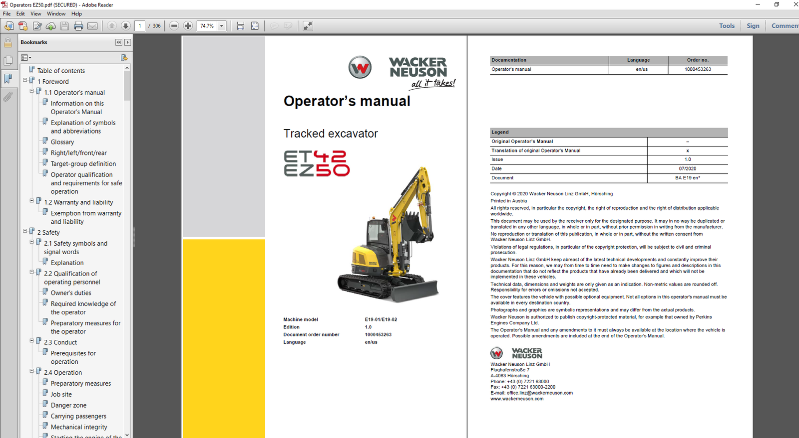 Wacker Neuson ET42 & EZ50 Excavator Operator’s Manual – PDF Download