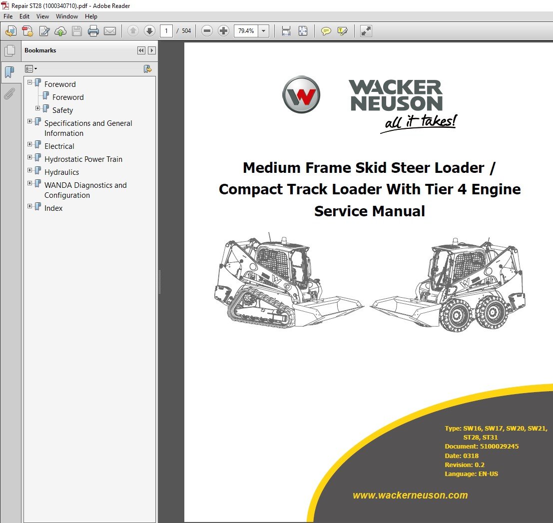 Get the complete Wacker Neuson ST28 Skid Steer Loader Service Repair Manual PDF download, your all-in-one solution for professional maintenance, troubleshooting, and repair procedures. This manual is specifically designed for technicians, mechanics, and equipment owners who need accurate and detailed technical information to keep their machine running at peak performance.