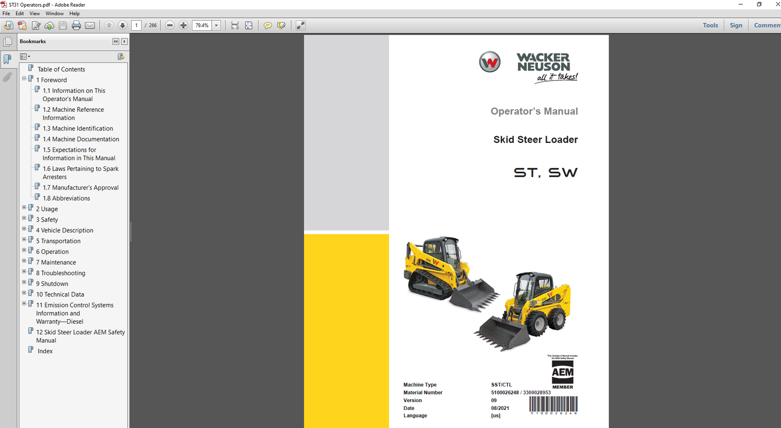 Wacker Neuson ST31 Skid Steer Loader Operator’s Manual – PDF Download