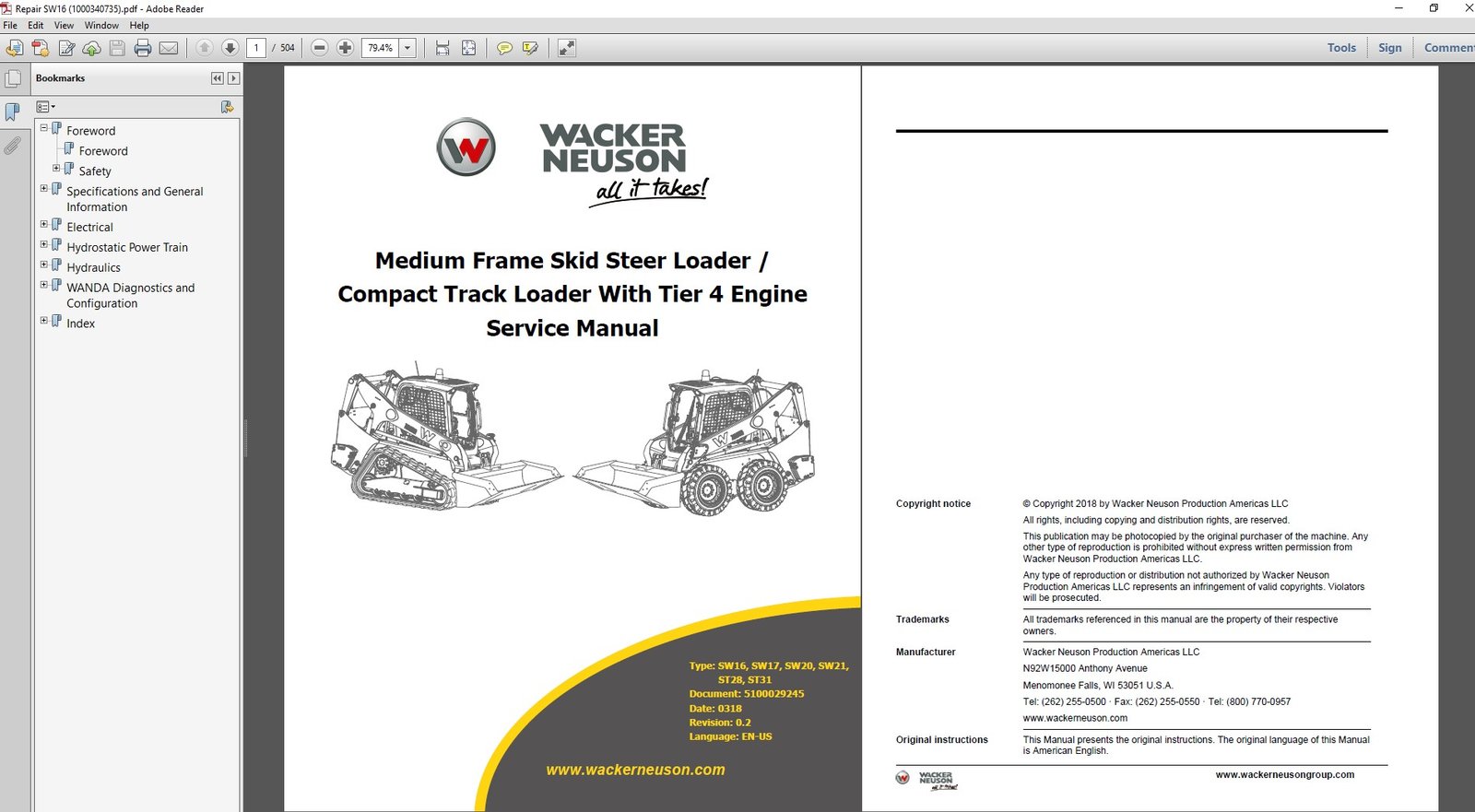 Download the complete Wacker Neuson SW16 Skid Steer Service Repair Manual in PDF format for instant access. This comprehensive workshop manual is designed for technicians, mechanics, and equipment owners who need accurate, step-by-step instructions to service, maintain, and repair their skid steer loader efficiently.