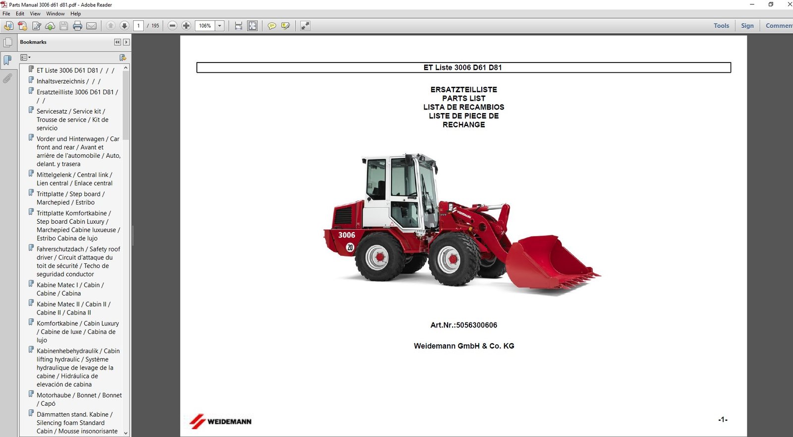 - ✔️ Complete parts catalog for Weidemann 3006 D81 Wheel Loader