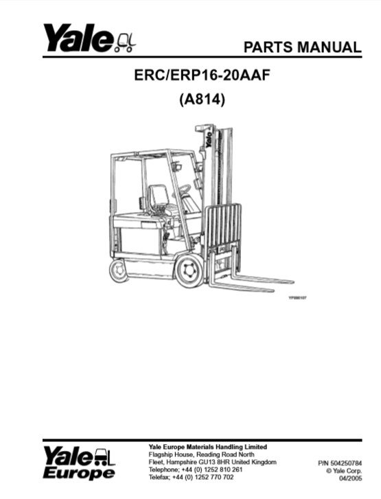 The Yale ERC-ERP16-20AAF (A814) Forklift Parts Manual is an essential resource for maintaining and servicing your Yale forklift, ensuring optimal performance and longevity. This comprehensive manual provides detailed diagrams, part numbers, and specifications for all components, making it easy to identify and order the correct parts for repairs or replacements. With clear illustrations and step-by-step instructions, this manual empowers operators and technicians to perform maintenance tasks with confidence, reducing downtime and enhancing productivity. Whether you are a seasoned professional or a novice, the Yale ERC-ERP16-20AAF Parts Manual is an invaluable tool that supports efficient forklift operation and helps you keep your equipment running smoothly. Invest in this manual today to ensure your Yale forklift remains in peak condition for years to come