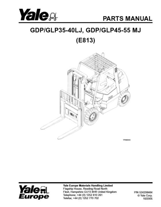 Enhance the performance and longevity of your Yale GDP-GLP35-40LJ and GDP-GLP45-55 MJ forklifts with the comprehensive Forklift Parts Manual (E813). This meticulously crafted manual serves as an essential resource for operators and maintenance personnel, providing detailed diagrams, part numbers, and specifications for all components. With clear instructions and troubleshooting tips, it empowers users to efficiently identify and replace parts, ensuring optimal functionality and safety of your equipment. Whether you are conducting routine maintenance or addressing specific issues, this manual is designed to streamline your repair processes, reduce downtime, and ultimately save on costly repairs. Invest in the Forklift Parts Manual today and keep your Yale forklifts running smoothly and efficiently for years to come