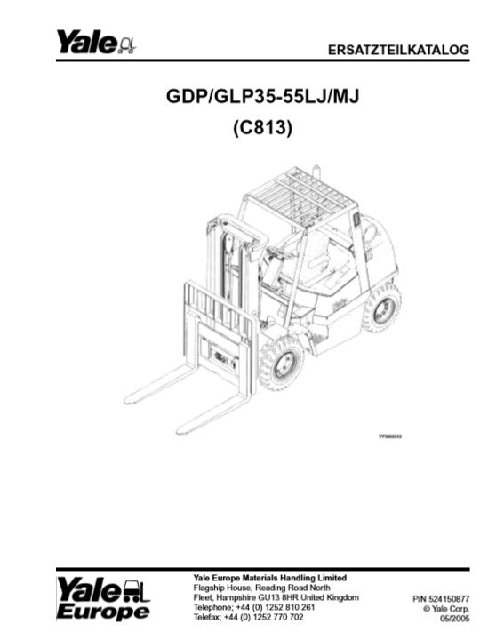 Parts manual for Yale GDP, GLP35-55LJ, MJ (C813) Forklift, showcasing components and assembly instructionsYale GDP, GLP35-55LJ, MJ (C813) Forklift Parts Manual